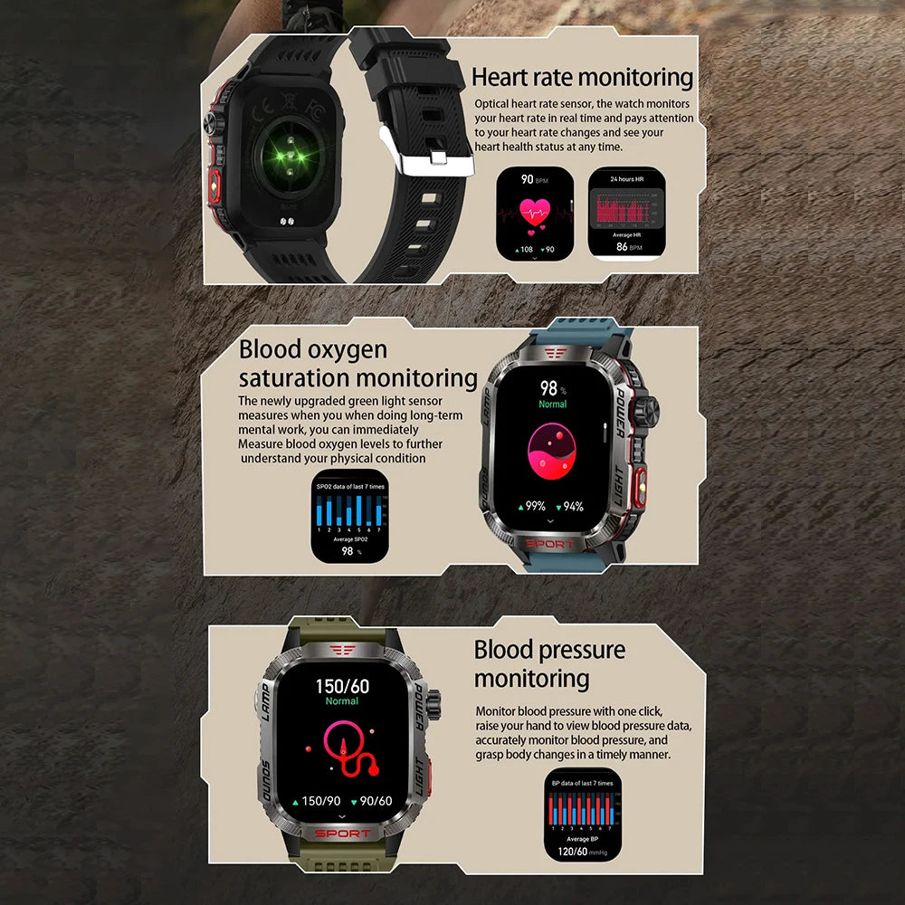 Stay connected and on track with this Outdoor Smartwatch. Featuring fitness tracking, Bluetooth calls, and a durable design, it's perfect for your active lifestyle.